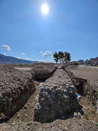 Mozaikleri, binlerce yıllık geçmişi, eski Roma kenti kimliğiyle, Antakya ilçesi Küçükdalyan mevkiindeyiz. Hatay Arkeoloji Müzesi tarafından gerçekleştirildiği ifade edilen bir kazı alanında! Kazı çalışmasının ilk başladığı tarih, bilinmiyor. Ancak yapılan çalışma sonunda bölgede çıkanların eski Roma’ya ait olduğu bilgisi paylaşılıyor. Bölgede, Antakya Surlarının devamı gibi görünen ve etrafı özenle açılarak düzeltilmiş bir taş duvar da var. Açılan ve genişletilen çukurlarda ise toprak mezarlar!
