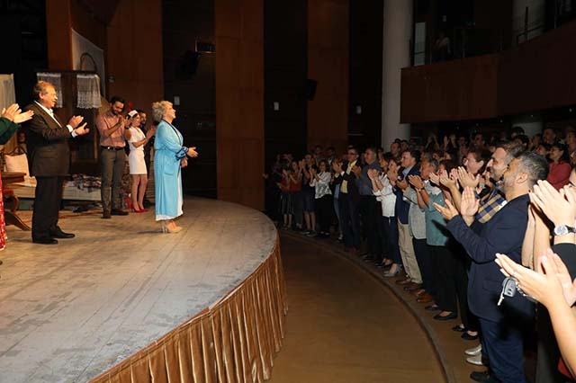 “ Ünlü oyuncular Yasemin Yalçın ve İlyas İlbey’in sahne aldığı Vee Perde adlı oyunun göz dolduran performansını ve sahneye yansıttıkları enerjiyi keyifle izledik. Sanat dolu bu güzel gecede emeği geçen herkese teşekkür ederim.”