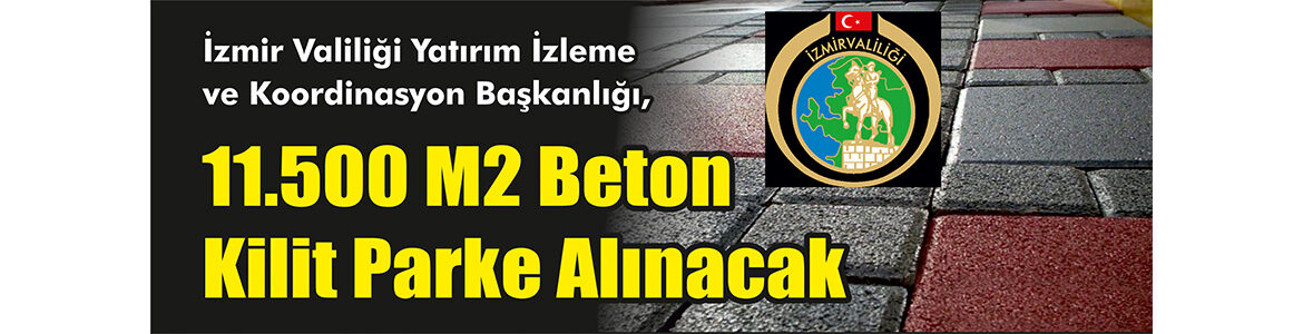 İzmir Valiliği Yatırım İzleme ve Koordinasyon Başkanlığı, 11.500 m2 beton kilit parke alacak.