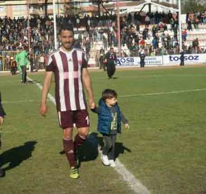 Foto. Mithat-mesut. 13 Golün kahramanı Mithat ile Kaptan Mesut, galibiyet sonrası taraftarla bir maçta çocuklarıyla birlikte sevinç yaşıyor…