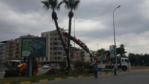 İskenderun’da PAC trafiğini düzenlemeye yönelik Büyükşehir Belediyesi çalışmaları sırasında 134 palmiye ağacı iş makinaları ile kökünden çıkartıldı ve kentin değişik bölgelerine ekilerek hem yaşamaları sağlandı hem de kente estetik bir görüntü verilmesi hedeflendi. Palmiye ağaçlarını özenle söken HBB Park Bahçe ve Yeşil Alanlar Dairesi Başkanlığı ekipleri, 134 ağacı yeni yerine dikti.