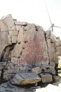 Peki, ne tür sorunlardan mı bahsediyoruz? Mesela, Seleukeia Pieria (Pieria’daki Seleukeia) antik kentinin en önemli kalıntılarından birisi kabul edilen Beşikli Kaya Mezarları’nın önündeki ahşap engellerin uzun zamandır olmamasını fırsat bilen misafirlerin tarihi alanın üzerinde yürümesi, poz verip fotoğraf çektirmesi ve bu korumasız hali adeta belgelemesi! Mezarların içinde fark edilen izmaritler ve çöpler ise işin utandıran kısmına girsin. Tabi, Titus’ta da fark edilen ve burada da devam eden sprey boya kirliliğini unutmamak şartıyla…