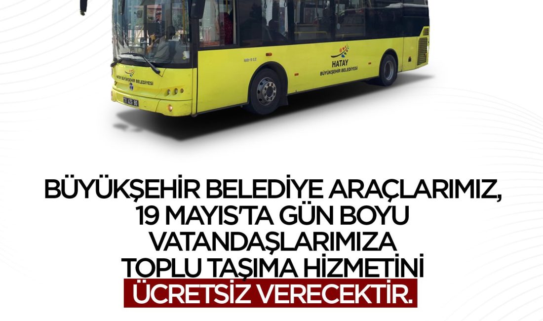 Hatay Büyükşehir Belediyesi (HBB), 19 Mayıs Atatürk’ü Anma ve Gençlik Spor Bayramı kapsamında ulaşımda kolaylık sağlayacak. HBB, bayram günü boyunca belediyeye ait tüm ulaşım araçlarının ücretsiz olacağını duyurdu.