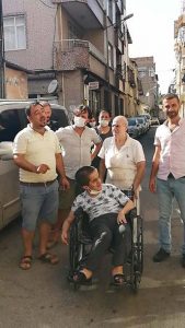 Küçük bir Armutlu turu attıktan sonra, Ocak’a, mahalle sakinleri ve diğer engellilerle küçük bir şenlik havasında aparatı teslim edildi.