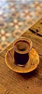 “Tahta sandalyeler, yine tahta bir masa… Burada kahvenizi, klasik, bildik bir fincanda içme durumunuz yok! Zaten kahve fincanı isteseniz de yok! Süvari denen, ufak bir çay bardağında geliyor, Türk Kahvesi. ‘Asıl keyfi, bardakta içilendir’ deniyor hatta. İstanbul’a dönünce, bir bardak sırf bunun için alır mıyım, henüz emin değilim. Ama beni çok farklı bir zaman dilimine taşıdığı kesin.