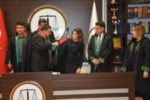 Hatay Barosu odasındaki yemin ve cübbe giyim töreninde; Genel Sekreter Av. Asena Aslan Şener ve Yönetim Kurulu Üyeleri, Av. Mehmet Ezer ve Av. Mustafa Sıraç da hazır bulundu. Baro Başkanı Av. Ekrem Dönmez, ruhsatlarını alan ve yemin eden iki genç avukat Ali Haydar Güleç ile Tansu Yılmaz’ı kutladı, başarı diledi. -Selvi Günay-