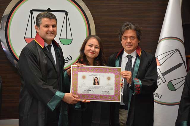 Mediha Kanmaz’a cübbesini Av. Suat Özgül, Zeynep Çelik’e cübbesini Av. Sinan Canğaz giydirdi. Törene; Başkan Yardımcısı Av. Sevinç Çakıcı, Yönetim Kurulu üyesi Av. Hüseyin Derin, meslektaşları ve yemin eden meslektaşların aileleri katıldı. Baro Başkanı Av. Ekrem Dönmez, mesleğe adım atan genç hukukçuları kutladı ve başarı diledi. -Selvi Günay-