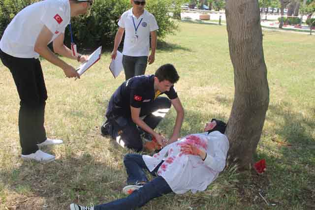 Hatay İl Sağlık Müdürlüğü ile MKÜ işbirliğiyle gerçekleştirilen Ambulans Rallisi gerçeği aratmadı. Yaralılar, yerlerde kanlar içinde müdahale bekledi.