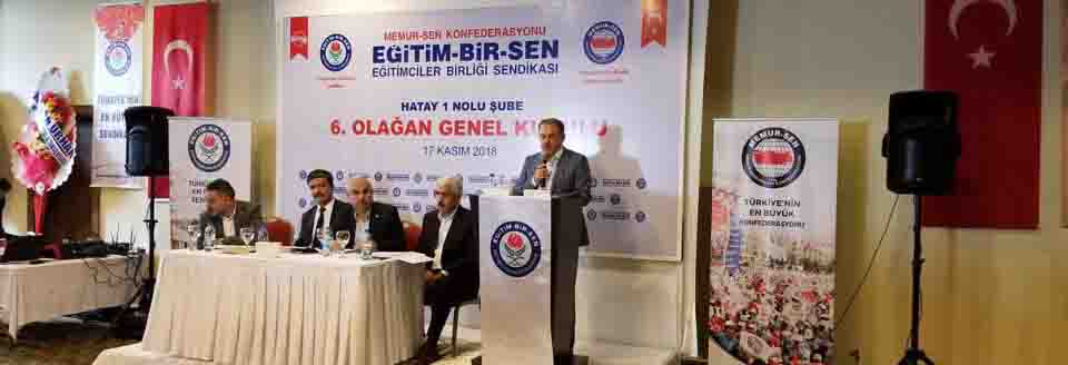 Eğitim Bir Sen Hatay 1 Nolu Şubesi’nin 6.Olağan Genel Kurulu ise Antakya Anemon Otel’de yapıldı. Delegelerin yoğun katılımı ile gerçekleşen Kongre’ye siyaset ve eğitim dünyasının önemli isimleri katıldı. Eğitim Bir Sen Kongresi’ne katılanlar arasında; Hatay Milli Eğitim Müdürü Kemal Karahan, İl Müftüsü Hamdi Kavillioğlu, Antakya İlçe Milli Eğitim Müdürü Mesut Çerko, Defne İlçe Milli Eğitim Müdürü Kemal Gülistan, diğer bazı İlçe Milli Eğitim Müdürleri, İskenderun Teknik Üniversitesi Daire Başkanı Oktay Çolak AK Parti Hatay İl Başkanı İbrahim Güler, BBP Hatay İl Başkanı Nevin Zeytineli, Saadet Partisi Hatay İl Başkanı Mustafa Eğe, AK Parti Antakya İlçe Başkanı Ramazan Alpaslan, AK Parti Defne İlçe Başkanı Kenan Türkmen ile Eğitim Bir Sen İlçe Başkanları, Kadın Kolları Başkanı, Yönetim Kurulu üyeleri, delegeler yer aldı.