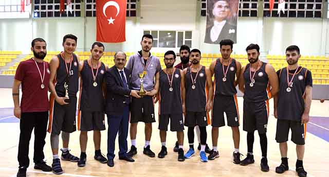 Dereceye giren takım ve sporcular, ödüllerini ve kupalarını Üniversite Rektörü Prof. Dr. Hasan Kaya’nın elinden aldı. -Cemil Yıldız-