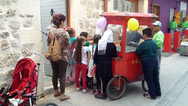 Antakya Fevzi Çakmak Ortaokulu’nun karşısındaki eski bir Antakya evinin taş avlusunda bir araya gelen çocuklar, 23 Nisan Ulusal Egemenlik ve Çocuk Bayramı’nın coşkusunu doyasıya yaşadı. Gölge oyunundan canlı müziğe, pamuk şekerden palyaçoya her detayın düşünüldüğü etkinlikte