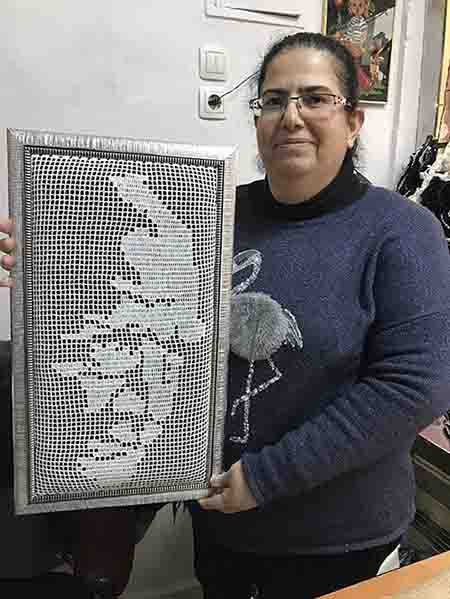 Dikkatimi çeken bir şey var… Duvarda asılı bir Atatürk Portresi bu! Ama şu ana kadar gördüklerimden çok farklı. Bu bir Atatürk Portresi, ama dantel ile işlenmiş. Sanırım, 25 yıllık bir ustalığın ve bilginin bir karşılığı olmuş bu, öyle mi?