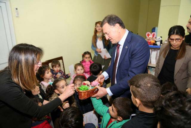 HATAY Büyükşehir Belediye Başkanı (HBB) Başkanı Doç. Dr. Lütfü Savaş, öğrencilere yapmış oldukları duyarlı davranıştan dolayı teşekkür belgesi takdim ederek, onlarla zaman geçirdi, gelecekte ne olmak istediklerini ve şehir yöneticilerinden beklentilerini sorarak miniklerle sohbet etti.