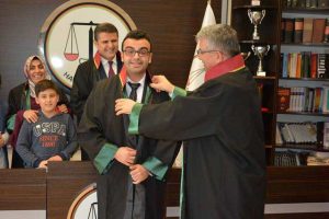 Şerife Kaya’ya cübbesini Avukat Hakları Merkezi Başkanı Av. Bedia Öztürk ve Av. Serkan Sahillioğlu, Ozan Emre Can’a cübbesini Av. Nevzat Şahinoğulları, Tunahan Işık’a cübbesini Baro Başkanı Av. Ekrem Dönmez, Başkan Yardımcısı Av. Sevinç Çakıcı ve Genel Sekreter Av. Asena Aslan Şener giydirdi. Törene; Baro Başkanı Av. Ekrem Dönmez, Başkan Yardımcısı Av. Sevinç Çakıcı, Genel Sekreter Av. Asena Aslan Şener, Yönetim Kurulu üyesi Av. Hüseyin Derin, çok sayıda davetli ve Avukat katıldı. Baro Başkanı Av. Ekrem Dönmez, ruhsat heyecanı yaşayan genç meslektaşlarını ve ailelerini kutladı, başarı diledi. -Selvi Günay-