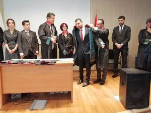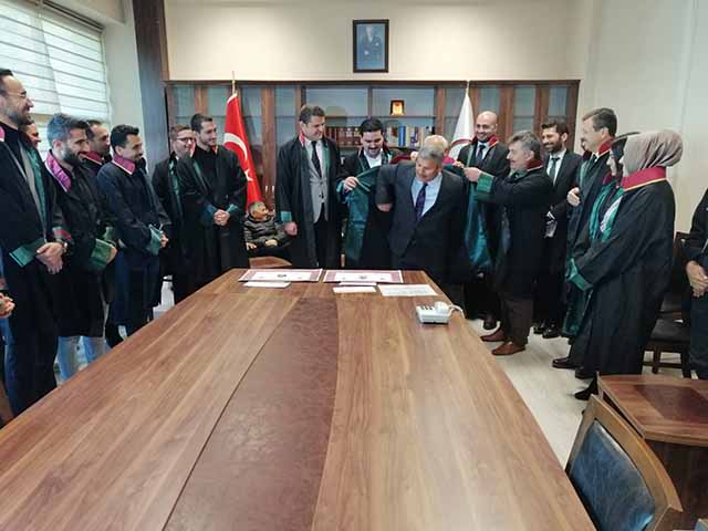 Muhammed Oğuzhan Öztürk’e cübbesini Av. Mehmet Nurullah Trabzon, İbrahim Bahadır Doğru’ya cübbesini Av.Bilgehan Çağrı Küçük, Fatih Dertsiz’e cübbesini Baro Başkanı Av. Ekrem Dönmez ve Av. Ahmet Derviş Urak, Nazmi Öztürk’e cübbesini Av.Mehmet Burak Bakır, Özgür Ferhat Koca’ya cübbesini Av. Müslüm Kızıl, Beyza Dinler’e cübbesini Av. Bülent Akbay, Sergen Yırtıcı’ya cübbesini Av. Ahmet Özdemir, Hasan Akkoyunlu’ya cübbesini Av. Abdullah Arıcan, Av. Mustafa Erdem ve Av. Emre Arık giydirdi.