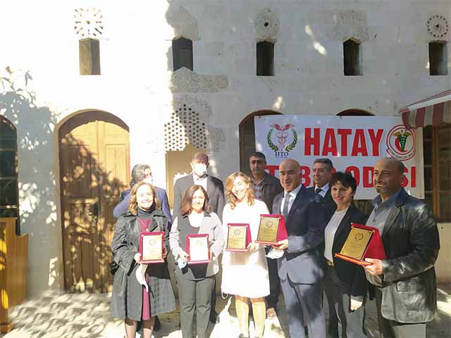 Hatay Tabip Odası, “14 Mart Tıp Bayramı” kutlamaları kapsamında, mesleğin duayen isimlerine Şükran Plaketleri verdi. Cumartesi günü Hatay Tabip Odası’nda gerçekleşen törende Şükran Plaketi verilen, mesleğin 40 yıllık kıdemli doktorları şunlar: