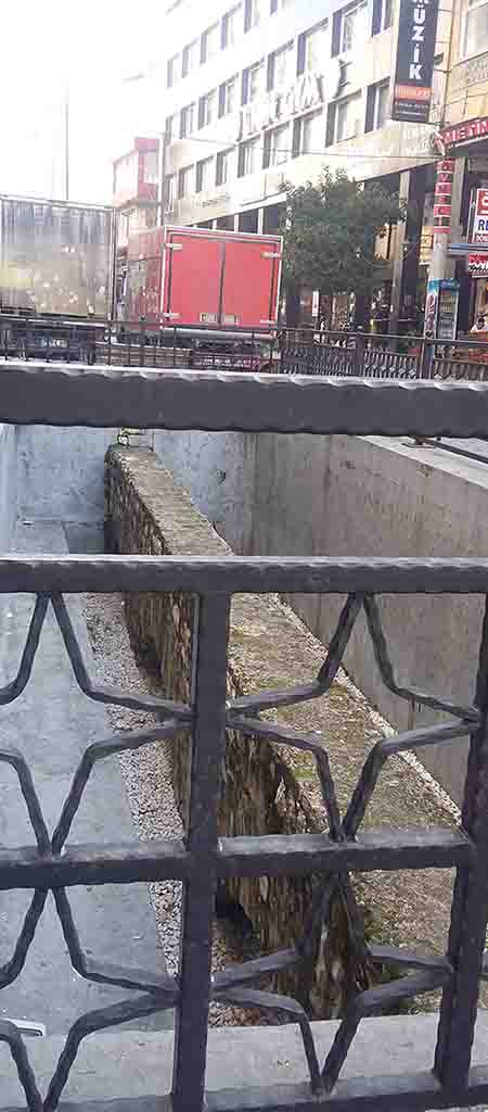 Tarihi ne, bilmiyorum. Aslında gördüğüm şeyin ne olduğunu da! Soranlara, ‘eskilerden kalma’ dedim geçen! Hatta ‘eski Roma’… Sorun şu ki… Kenti yönetenler, kentte yaşayanlardan turizm olgunluğu bekliyorlarsa, var olana sahip çıkacaklar, sahip çıkıldığını gösterecekler. Aksi halde durum bu! Yanı başından geçip gittiğiniz tarihi bilmemek, bence ayıp. Ama bu ayıp, bu kenti yönetenlerin! İçine baktınız mı? Çöp dolu. İşte bu, asıl kocaman bir ayıp. Bu kentin, içinde yaşayanlara anlatılamamasının en net karşılığı hatta!