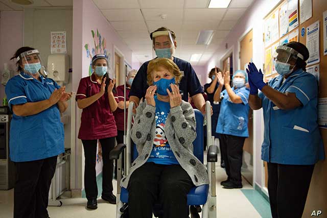 Çin ve Almanya’dan gelmesi planlanan aşılarla, ilk aşamada; sağlık çalışanları, 65 yaş üstü ile yaşlı, engelli, koruma evlerinde kalanlar ile kalabalık yerlerde yaşayanların, ikinci aşamada; toplum işleyişi için gerekli sektörlerde, kritik işlerde çalışanlar, 50 yaş ve üzeri en az 1 kronik hastalığı olanların, üçüncü aşamada; 50 yaş altı en az 1 kronik hastalığı olanları, genç yetişkinler, ilk iki grupta yer almayan sektör ve meslek çalışanlarının, dördüncü ve son aşamada ise ilk üç grubun dışında kalan tüm bireylerin aşılanacağı Türkiye, İngiltere’den gelen, dünyada aşılanan ilk insanın görüntülerine odaklandı. 90 yaşındaki Margaret Keenan, Pfizer/BioNTech aşısının geniş çaplı kullanımına onay verilen ilk ülke olan İngiltere’de aşılanan ilk isim oldu.