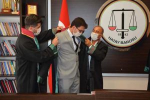 Staj dönemini başarı ile tamamlayan Bekir Kara, Uğur Cem Reyhanoğulları, Nuri Demircioğlu ve Enes Berat Kurtar, Hatay Adliyesinde düzenlenen yemin töreni ile ruhsatlarını, Hatay Barosu Başkanı Av. Ekrem Dönmez’in elinden aldı.