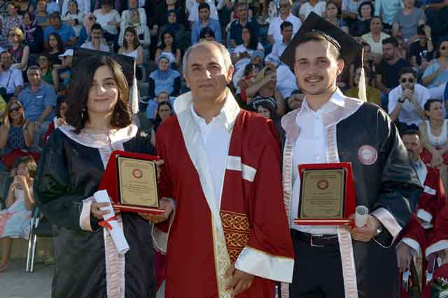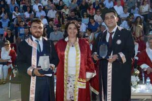 Mimarlık Fakültesi’ni birincilikle bitiren Zeynep Özgen’e plaket ve belgesi Rektör Yardımcısı Prof. Dr. Veysel Eren tarafından verilirken, Fakülte ikincisi Çağlar Süzer ile Fakülte üçüncüsü Zeynep Yıldırım’a plaket ve belgeleri Mimarlık Fakültesi Dekanı Prof. Dr. Necmi İşler tarafından verildi.