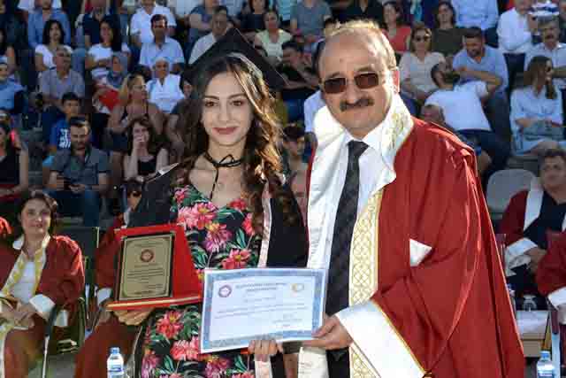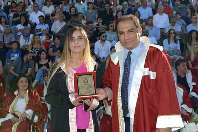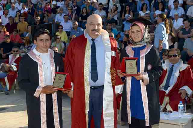 Ziraat Fakültesi’ni birincilikle bitiren Gamze Tamgüç’e plaket ve belgesi Rektör Yardımcısı Prof. Dr. Mehmet Kılınç tarafından verilirken, Fakülte ikincisi Beyhan Kaplan ile Fakülte üçüncüsü Sabiha Cansu Paçal’a plaket ve belgeleri Ziraat Fakültesi Dekanı Prof. Dr. Okan Şener tarafından verildi. -Cemil Yıldız-