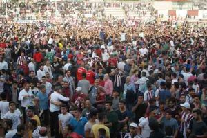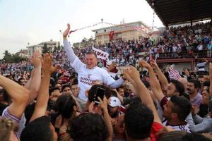 Maçtan sonra Antakya Atatürk Stadı’na inen taraftarlar, adeta karnaval havasında bir kutlama yaptı.