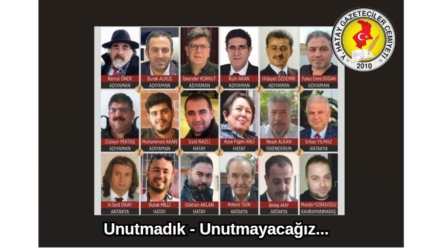 “Hatay Gazeteciler Cemiyeti olarak, depremde yitirdiğimiz canlarımızı rahmetle anıyor, yaralılarımıza acil şifalar diliyoruz. Deprem gerçeğini unutmamak ve unutturmamak için şehirlerimizi daha güvenli hale getirmek adına mücadelemizi sürdüreceğiz.”