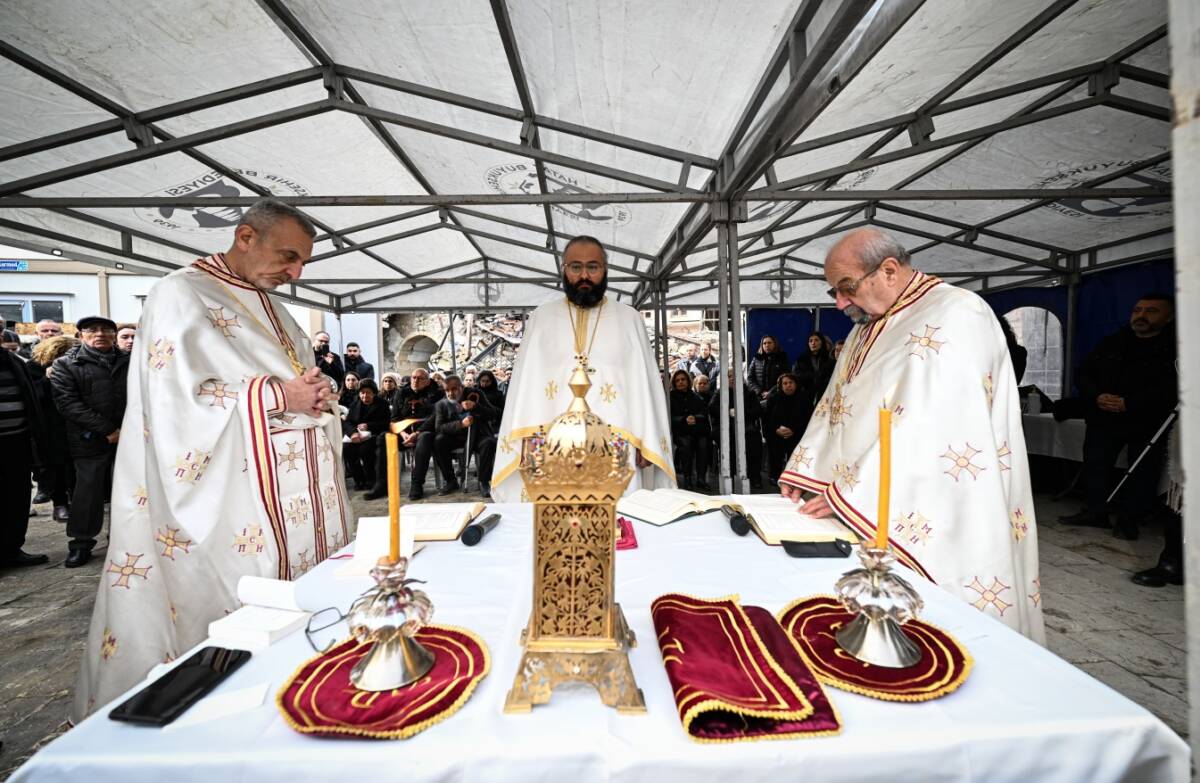 Antakya’da, 6 Şubat 2023’te yaşanan büyük depremin ardından yıkılan Antakya Ortodoks Kilisesi’nin enkazı önünde, afet nedeniyle hayatını kaybedenler için bir ayin düzenlendi. Merkez Antakya ilçesinde yapılan törene, bölgedeki dini liderlerin yanı sıra çok sayıda vatandaş katıldı.