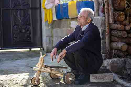 Mehmet Usta, 3 tekerlekli tahta arabalarla çocukları eğlendiriyor, bundan da