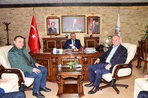 Düzce Belediye Başkanı Mehmet Keleş, Düzce-Halep Şefkat Çadırkenti yardım malzemelerinin Cilvegözü Sınır Kapısı’ndan Suriye’ye gönderilmesinin ardından; Hatay Valiliği, Reyhanlı Kaymakamlığı ve Reyhanlı Belediyesi’ni ziyaret etti. İlk olarak Hatay Valisi Erdal Ata ile görüşen Başkan Mehmet Keleş, Hatay’daki göçmenler ile sınır ötesinde çadırkentlerde yaşayan mülteciler hakkında bilgi aldı. Hatay Valisi Ata da, Düzce Belediyesi tarafından sınıra getirilen yardımlar için teşekkür etti.