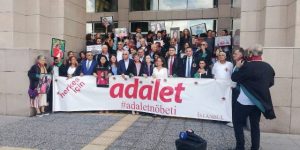 Hatay Barosu Başkanı Ekrem Dönmez: “Haksız tutuklamalara karşı başlatılan Adalet Nöbeti’nin 69. haftasında; asılsız ve akıl dışı iddialarla yargılanan tutuklu tüm Avukatlar şahsında demokrasi, özgürlük talep eden meslektaşlarımızla dayanışmak üzere Çağlayan Adliyesi’ndeki nöbette yerimizi aldık.”