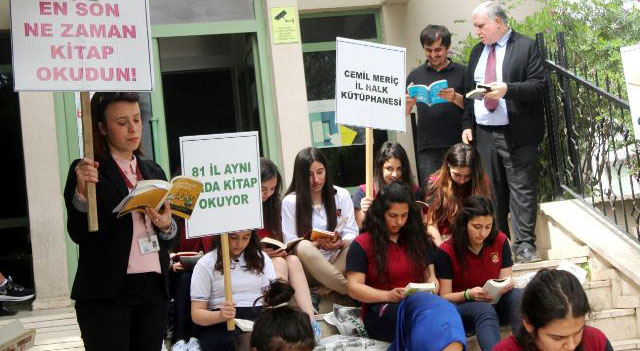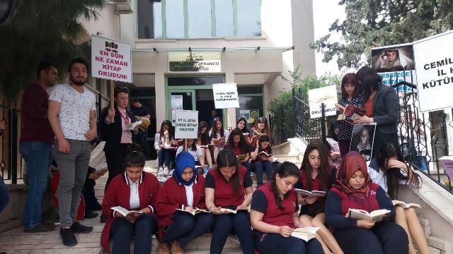 Türkiye’nin tüm illerinde olduğu gibi Antakya’da da gerçekleşen “81 ilde kitap okuyoruz” etkinliği, lise öğrencilerinin katılımıyla Cemil Meriç Kütüphanesi önünde yapıldı. Ellerinde; ’81 İl aynı anda kitap okuyor’, ‘En son ne zaman kütüphaneye gittin?’, ‘Sessizce kitap okuyoruz’, ‘Biz okuyoruz’, ‘Okuyorum, varım’ gibi dövizler taşıyan öğrenciler, ‘İnsan Her Yerde Kitap Okur’ teması çerçevesinde ellerinde tuttukları kitaplarla herkesi ‘okumaya’ davet etti.