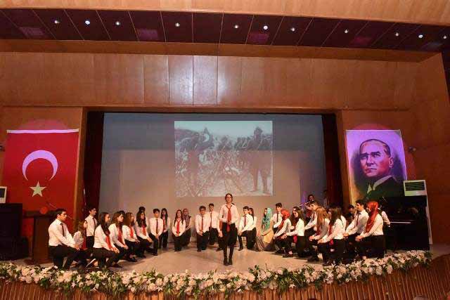 Antakya Anadolu Lisesi öğrencisi Oğuz Sürmeli’nin milli birlik ve beraberliği anlatan konuşması büyük beğeni toplarken, Türk Milletinin var olma savaşını ölümsüzleştiren, milletin her bir ferdini ortak ideallerde buluşturan İstiklal Marşı’mız ve değerli Şairi Mehmet Akif Ersoy’u anma günü programı, Antakya Anadolu Lisesi öğrencilerinin hazırladığı oratoryo ile son buldu. -Cemil Yıldız-