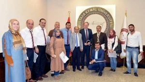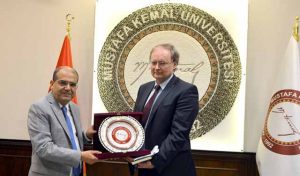 Pazartesi günü Hatay’a gelen ve Salı günü gün boyu yoğun ziyaret, inceleme ve açılış trafiğine katılan Avrupa Birliği Bakanlığı ve AB Delegasyon üyeleri MKÜ’ye de gitti ve Rektör Prof. Dr. Hasan Kaya’yı ziyaret etti.