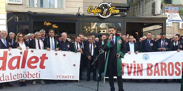 Türkiye Barolar Birliği’nin (TBB) bir süredir uygulamakta olduğu, yurdun çeşitli yerlerindeki “Adalet Nöbeti” bu kez Artvin’de uygulandı. Hatay Barosu’nu temsilen Başkan Ekrem Dönmez de geçtiğimiz hafta sonunda Artvin’e gitti ve bu ilimizdeki Avukatların “Adalet İstiyoruz” nöbetine katıldı, bir konuşma yaptı, destek verdi. Hatay Barosu Başkanı Av.Ekrem Dönmez, etkinliğe katıldıktan sonra kente döndü ve şu kısa mesajı verdi: