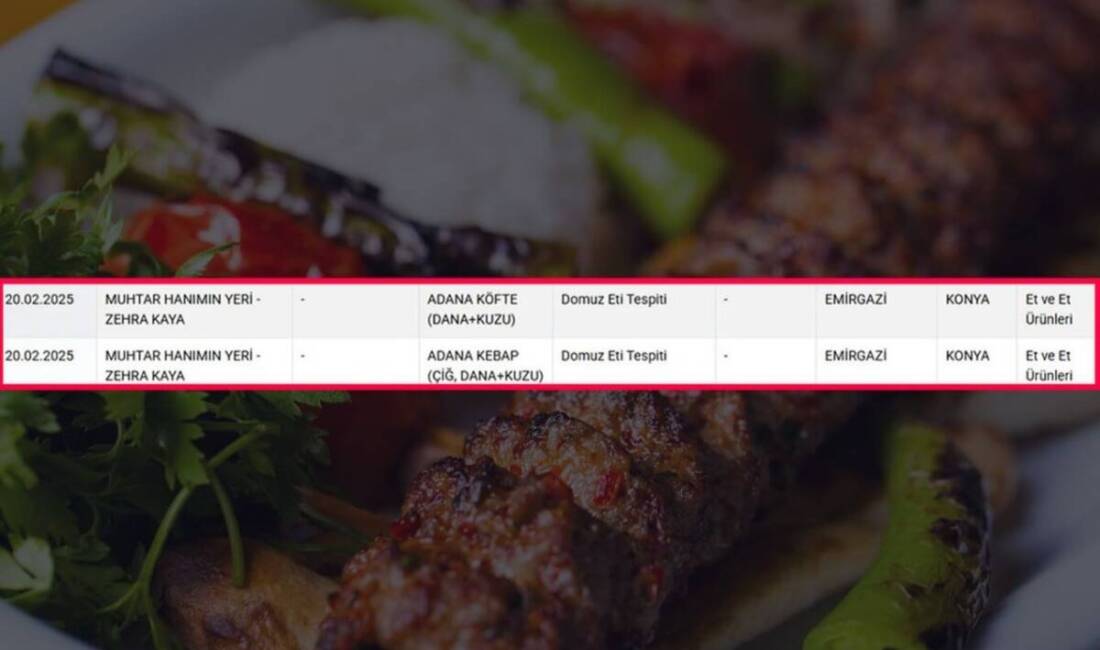 Tarım ve Orman Bakanlığı’nın Konya’daki gıda denetimleri sırasında büyük bir skandal ortaya çıktı. Emirgazi ilçesinde faaliyet gösteren “Muhtar Hanımın Yeri” adlı işletmede satılan Adana kebap ve köftenin içinde domuz eti bulundu.