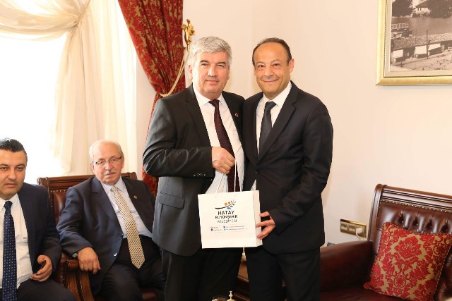 HBB Başkanı Doç. Dr. Lütfü Savaş’ın daveti üzerine kente gelen ve Hatay’ın sınır hattı ziyareti ardından Hatay BŞB’ye ziyaret gerçekleştiren Tekirdağ heyetini, HBB Başkan Vekili Selim Matkap ağırladı.