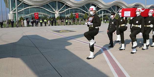 Bayrağına sarılı naaşı, saygı duruşunda bulunulması ve Şehidin öz geçmişinin okunmasının ardından, silah arkadaşlarının omzunda askeri uçağa taşınarak memleketi Mardin’e uğurlandı.