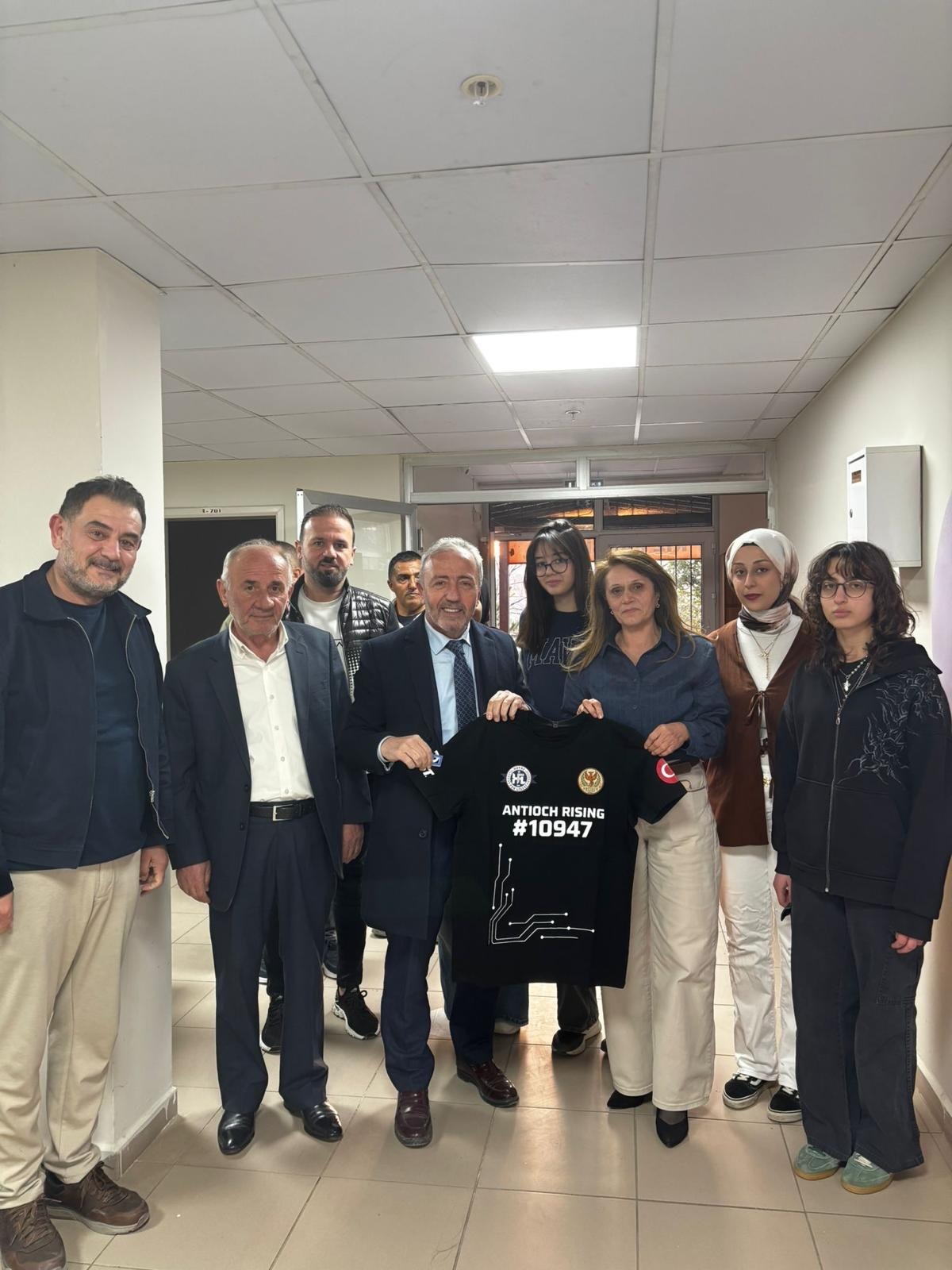 Hatay Fen Lisesi öğrencileri, hafta sonunda kendilerine iftar yemeği veren İstanbullu iş insanı Erol Ağaoğlu’na anlamlı bir jest yaptı. Öğrenciler, robot yarışması için tasarladıkları özel tişörtü Ağaoğlu’na hediye ederek teşekkürlerini iletti.