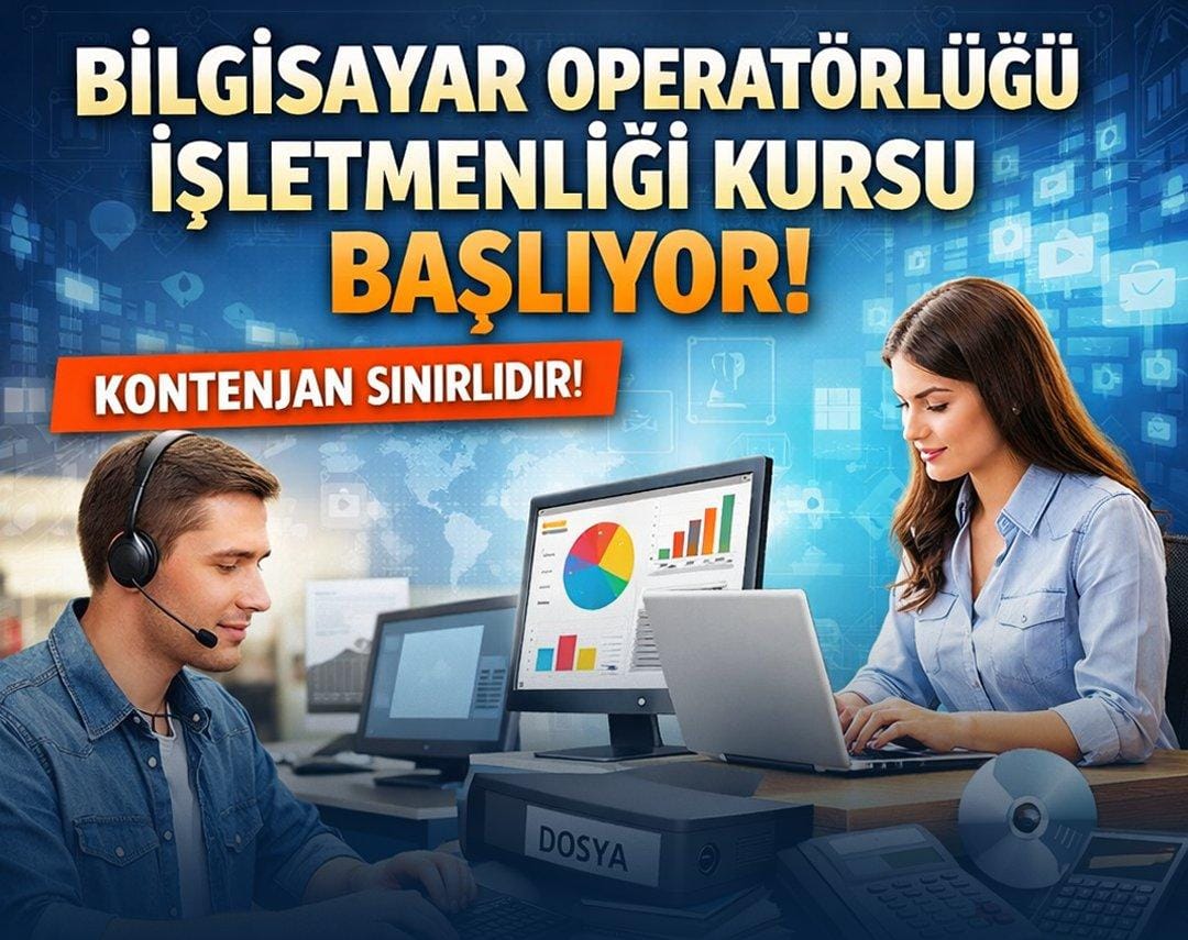 HBB Akademi Hatay tarafından Bilgisayar Operatörlüğü ve İşletmenliği Kursu başlatılıyor. Kontenjanı sınırlı olan kurs için başvurular 5–10 Ocak 2026 tarihleri arasında alınacak.