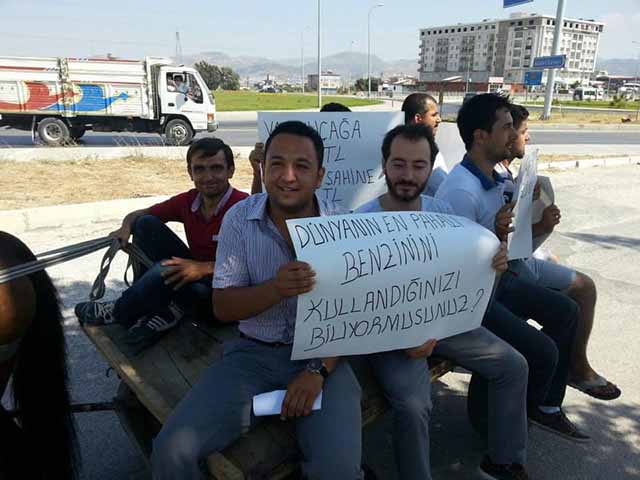 Antakya CHP İlçe Başkanı Ümit Kutlu, bir grup Partili arkadaşıyla birlikte, bundan tam 8 yıl önce dönemin Gençlik Kolları Başkanı iken akaryakıt zamlarını protesto amacıyla şehir içinde at arabasına binerek tur atmıştı. At arabasıyla şehir içinde gezmenin yasak olduğu ilimizde, akaryakıt zammı nedeniyle, yasağı delerek arkadaşlarıyla birlikte kent içinde zamları protesto eden CHP’li Başkan Ümit Kutlu, şimdi de 8 yıl önceki protesto eylemine atıfta bulunarak, “İnanırsan AKP’nin yalanlarına, bir gün gelir düşersin at arabasına” sözünü hatırlatıyor.
