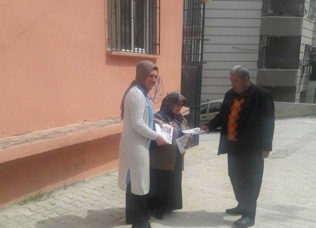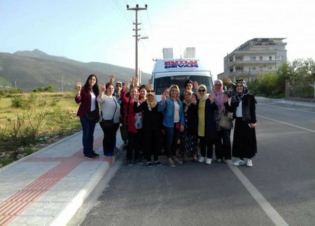 Hatay Ak Parti İl Kadın Kolları Başkanı Avukat Sabahat Özgürsoy Çelik öncülüğünde çalışmalarını sürdüren Ak Partili kadınlar, Cumhurbaşkanı Recep Tayyip Erdoğan’ın katılacağı Hatay İl Kongresi için çalmadık kapı bırakmazken, tüm vatandaşlara davette de bulunuyor. Kimi telefon başında Hataylı vatandaşlara ulaşmaya çalışırken, kimi de saha çalışmasıyla çalmadık kapı, sıkmadık el bırakmayarak, Cumhurbaşkanı Erdoğan’ın Hatay’a gelmesini duyuran Partili kadınlar, vatandaşları İl Kongresi’ne davet ediyor. Ak Partili kadınların bir bölümü İl binasında çağrı merkezi oluşturarak Hataylı vatandaşlara telefonla ulaşıyor, bir bölümü de ellerine aldıkları tanıtım broşürleriyle mahalle mahalle dolaşarak vatandaşları yapılacak kongreye davet ediyor. Devam eden çalışmalara dair konuşan Hatay Ak Parti Kadın Kolları İl Başkanı Sabahat Özgürsoy Çelik, “Cumhurbaşkanımız üç gün sonra Hatay’a teşrif edecek. Zamanımız kısıtlı, bu yüzden Ak sevdaya gönül vermiş kadın kardeşlerimle birlikte kolları sıvadık. Kimi, oluşturduğumuz çağrı merkezi ile kimisi de zaman zaman sahada broşür dağıtarak Hataylı vatandaşlarımıza ulaşmaya çalışıyor. Üzerimize düşen tüm görevleri yapıyoruz” açıklaması yaptı. -Cemil Yıldız-