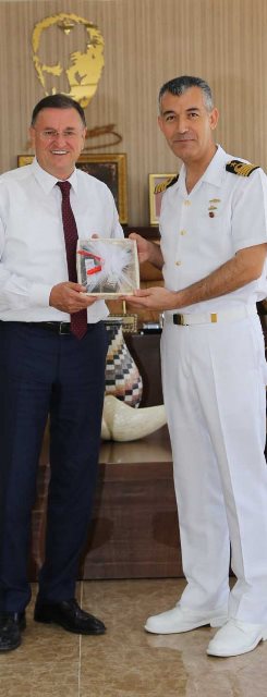 İskenderun Deniz Üs Komutanı Kurmay Albay Aykar Tekin’n veda ziyaretleri sürüyor. Alb.Aykar, hafta başında Vali Erdal Ata, önceki gün de Hatay Büyükşehir Belediye Başkanı Lütfü Savaş’a ayrı ayrı veda etti. Alb. Aykar’ın, veda ziyaretleri kapsamında, ilimizde askeri ve polis başta olmak üzere birçok kurumun üst düzey yöneticisine veda ettiği de öğrenildi. -CEmil Yıldız-