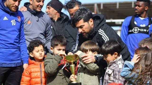Antakya’da özel bir okula giden okul öncesi minikler, kendi çaba ve emekleriyle yaptıkları kupayı Hatayspor Teknik Direktörü İlhan Palut’a vererek hediye ettiler. Minikler, öğretmenleri eşliğinde, geçtiğimiz hafta sonunda Antakya Atatürk Stadı’nda çalışma yapan Hatayspor futbolcularına sürpriz bir ziyarette bulundular. Futbolcular, miniklerin bu sürpriz ziyaretinden hoşnut kalırken, minikler de futbolcu ağabeyleriyle sohbet ettiler ve bol bol fotoğraf çektirdiler.