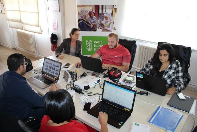 “Pek çok yardım kuruluşu, ilçemize gelip ailelere katkı yaptı. Bu yardım kuruluşlarından biri de Alman İnsani Yardım Derneği Welt Hunger Hilfe (WHH) oldu. Welt Hunger Hilfe (WHH), bu bağlamda, fakirlik çeken ve acil ihtiyaçlarını karşılayamayan Suriyeli ailelerin yaşam şartlarını iyileştirebilmek için 1835 aileden 1716 aileye 6 ay boyunca 3.823.643,00 TL nakit para yardımı yaptı. Ayrıca Altınözü Sosyal Yardımlaşma ve Dayanışma Vakfı (SYD Vakfı) ile Sera, Dikiş-Nakış, Küçük ve Büyükbaş Hayvancılık konularında projeler hazırlanmasına karar verildi. Bu çerçevede projelerin hazırlık aşaması tamamlandı, uygulama aşamasına geçildi.”