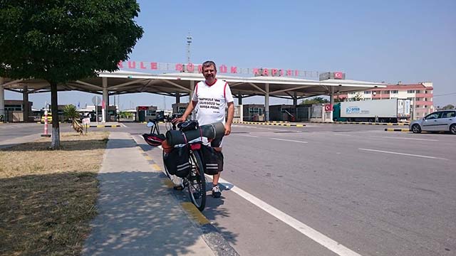Hatay Eğitim Sen eski başkanı Servet Kavukoğlu, 4 yıl önce Kapıkule-Cilvegözü arası, şimdi ise Artvin-Hopa’dan Zonguldak Alaplı’ya bisikletiyle yol alıyor. Kavukoğlu’nun tek amacı, “toplumun her kesiminde barışa duyarlılık oluşturmak.”
