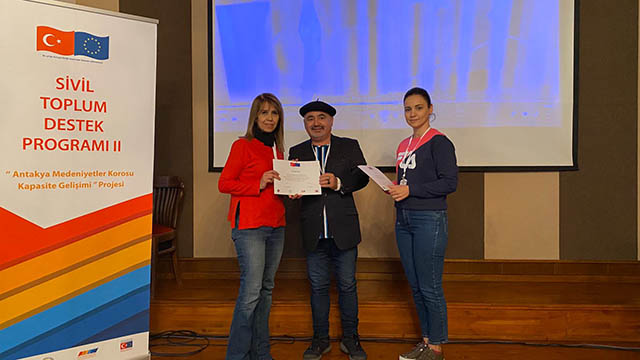 AB tarafından finanse edilen Sivil Toplum Destek II Programı çerçevesindeki Medeniyetler Korosu Kapasite Gelişimi Projesinin faaliyeti olan iletişim eğitimlerini başarılı bir biçimde tamamladıklarını ifade eden Antakya Medeniyetler Korosu Başkanı Yılmaz Özfırat, koro üyelerine Sekiz gün boyunca oldukça faydalı bilgiler veren Prof.Dr.Sedat Cereci’ye teşekkür ederek, eğitimlere yoğun katılım gösteren koro üyelerine şükranlarını sundu. -Mehmet ÖZGÜN-