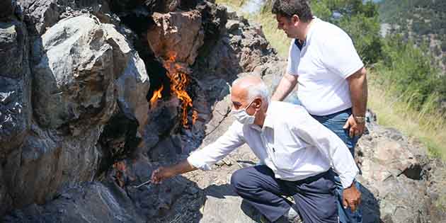 Güven, yanar taşlardaki ateşin kuvvetli olması nedeniyle, yaylacıların, taşları çaylarını demlemek için ocak olarak kullandığını sözlerine ekledi.