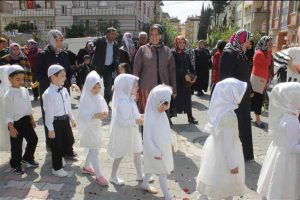 Osmanlı geleneği olan Amin Alayı’nda; Hoca, merasim günü çocukları sıraya dizer, öndekiler yüksek sesle ve koro halinde ilâhiler okuyarak, arkadakiler de beyit aralarında “âmin” diye bağırarak, neşe içinde çocuğun evine gelirlerdi. Amin Alayı eve gelince, hoca dua eder, arkasından herkes “Amin!” derdi. Program, halka açık sunulan mehter gösterisi ve öğrencilerin okuduğu ilahilerin ardından, Takva Camii’nde okunan Aşr-ı Şerifler ve yapılan dua ile sona erdi. Günün hatırası olarak öğrencilere madalya hediye edildi. -Mehmet Durmaz-
