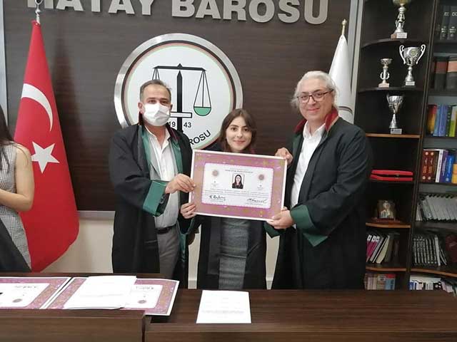 Antakya Adliyesi’nde düzenlenen törenle stajyerlik dönemlerini başarıyla tamamlayan 3 hukuk mezunu genç, törenle, Avukatlık mesleğini icra edecekleri ruhsatnamelerini aldı. Üç genç yemin etti ve cübbe giydi.